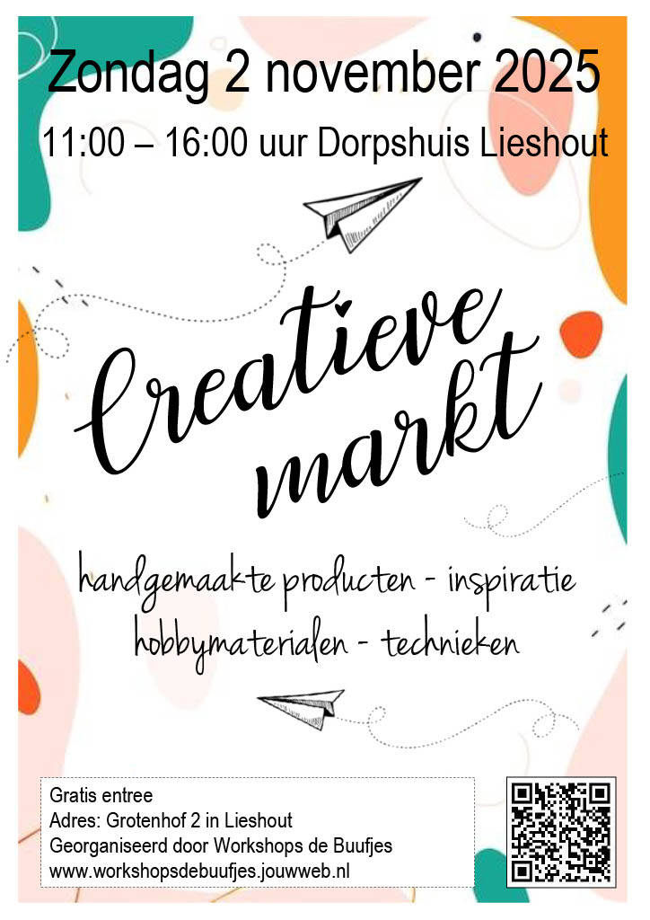Op zondag 2 november organiseren Sandra en Marleen van Workshops de Buufjes voor de 4e keer een gezellige creatieve markt. Deze vindt plaats van 11:00 - 16:00 uur in het Dorpshuis in Lieshout. De entree is gratis.