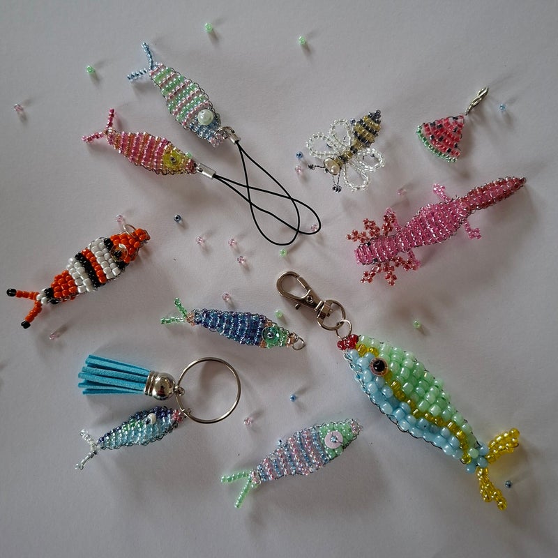 - Materiaal wat je gebruikt tijdens de workshop zoals kralen, draad, sleutelring, oorbellenhaakjes, kwastjes, karabijnhaakjes of een leuke ketting om je visje aan te hangen.